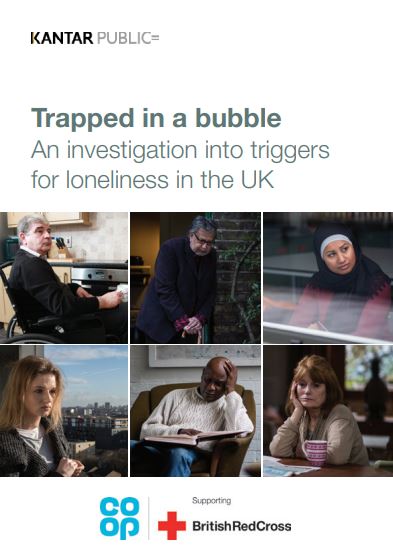 Kantar Public was commissioned by the British Red Cross to carry out research into some of the significant gaps in the evidence base around loneliness. Trapped in a bubble provides an insight into the causes and consequences of loneliness for six specific groups: young new mums (aged 18-24); individuals with mobility limitations; individuals with health issues; individuals who are recently divorced or separated (within the last two years); individuals living without children at home (‘empty nesters’) and retirees; and the recently bereaved (within the last six months to two years). It provides a useful starting point to begin thinking through different ways we can begin tackling loneliness and isolation.
